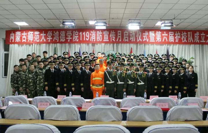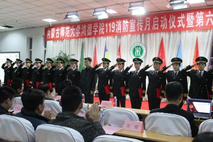 信息動(dòng)態(tài)/ RULES AND REGULATIONS根據(jù)院領(lǐng)導(dǎo)指示,我院于11月10日下午,在圖書館五樓報(bào)告廳舉行了“119消防宣傳活動(dòng)月啟動(dòng)儀式暨第六屆護(hù)校隊(duì)成立大會(huì)”。內(nèi)蒙古教育廳學(xué)校安全管理處郭文朝處長、呼和浩特市新城消防大隊(duì)參謀王東中校以及鴻德學(xué)院法制副院長李愛國、鴻德學(xué)院辦公室張玉恒副主任、鴻德學(xué)院學(xué)生處周玉森副處長、鴻德學(xué)院總務(wù)處焦建偉副處長、鴻德學(xué)院安全處梁和平處長、鴻德學(xué)院團(tuán)委書記助理馬明亮和我院各系(分院)學(xué)管老師出席了本次活動(dòng)。