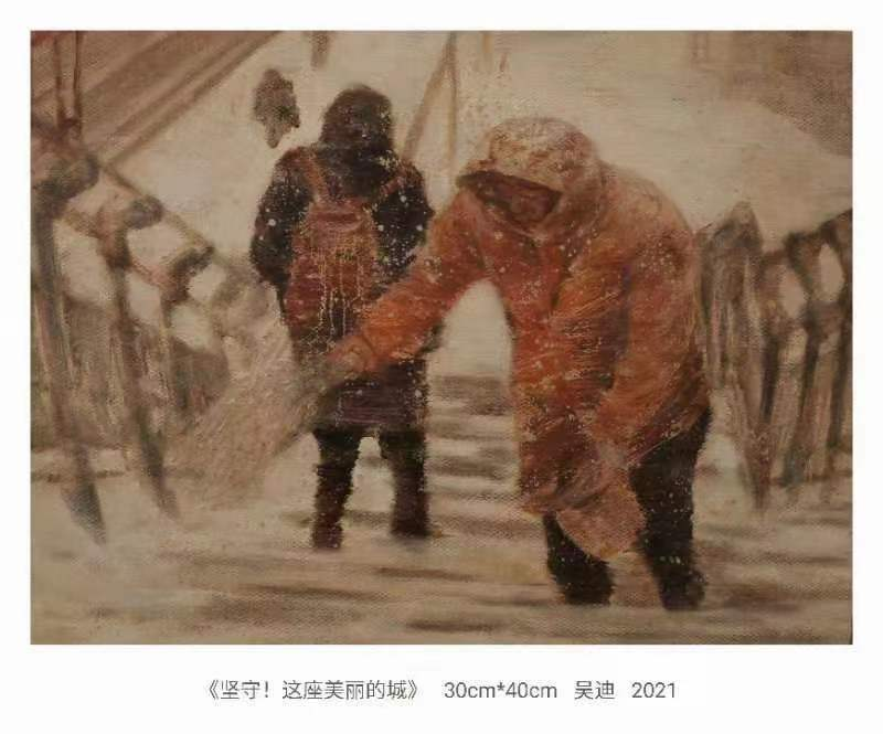 內蒙古赤峰市翁牛特旗教育教學研究中心美術教研員吳迪以一環衛工人為主體“堅守!這座美麗的城”獲第八屆全國職工美術作品一等獎。