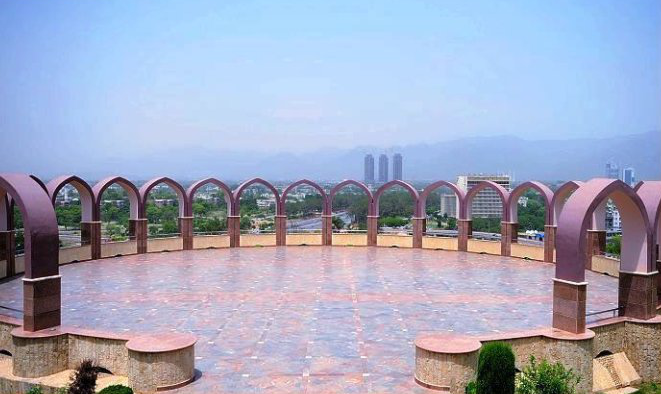 這是建造在伊斯蘭堡山丘上的巴基斯坦紀念館的中心廣場建筑。典型的現代人的氣息。遠處的三個正在建造中的樓房,是由阿聯酋公司開發由中國公司承建的三座綜合辦公大樓。