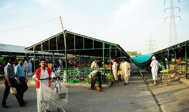 伊斯蘭堡城市有個大巴扎,大概每周開放三次吧,里面有賣蔬菜水果的,有賣衣服飾品的,有賣鍋碗瓢盤的。廣場上有很多推著購物車來回問詢需要不需要幫你裝貨送到門口的汽車上。他們都是穿著紅背心。這個服務有點像重慶碼頭的棒棒。