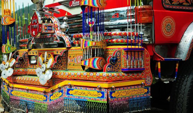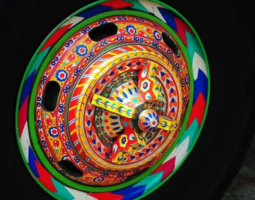 這個是我一輩子見過最為華麗壯觀裝飾的大貨車了,連車輪子都被司機精心裝飾了一番。相信如此美麗的卡車,應該是用以搬運珠寶錦緞真絲面料的吧。