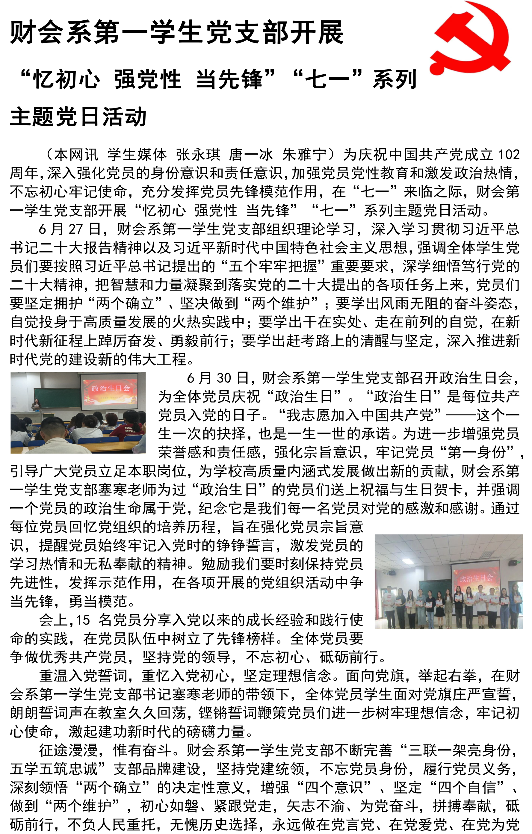 財會系第一學生黨支部開展“憶初心 強黨性 當先鋒”“七一”系列主題黨日活動
