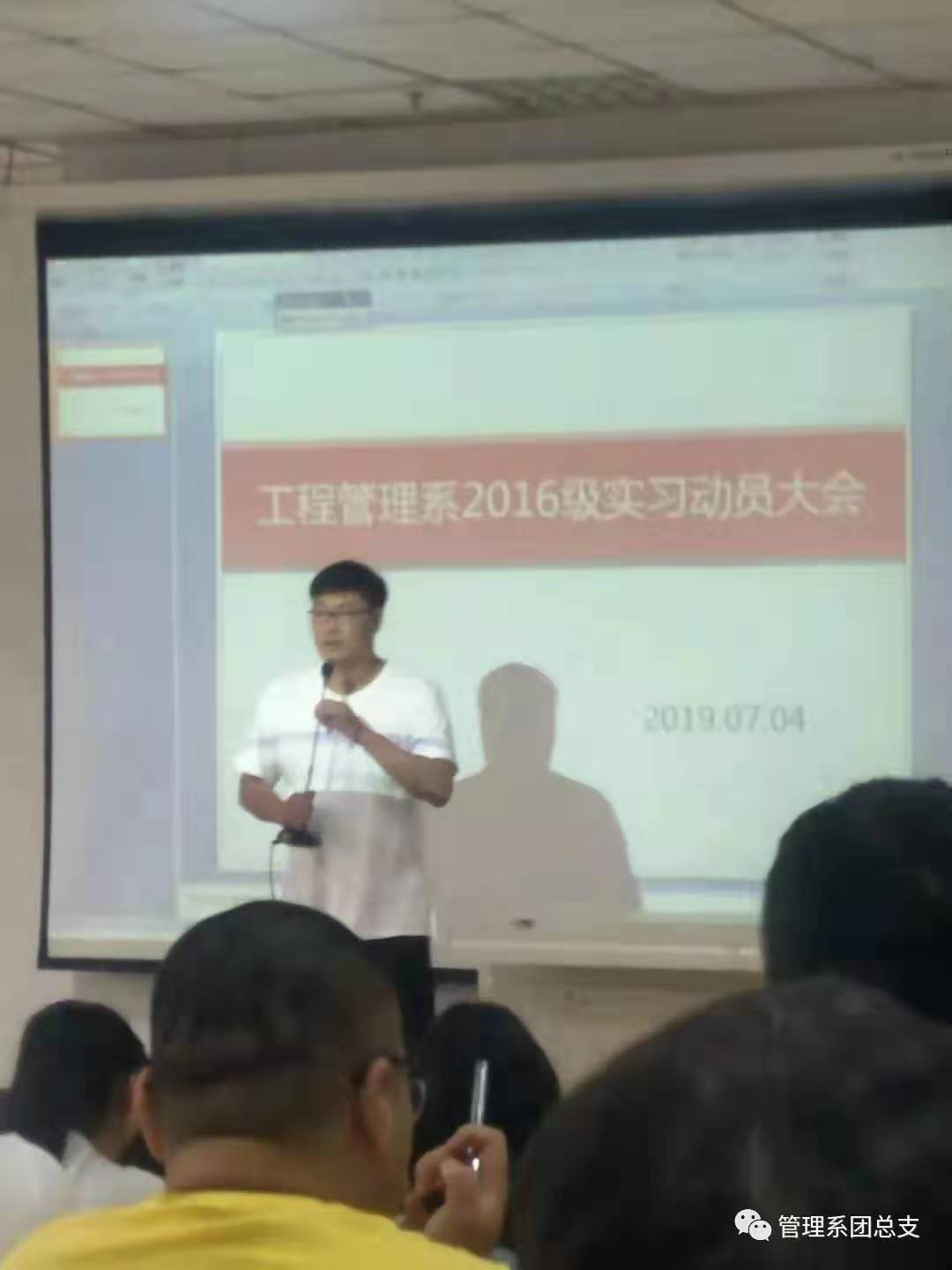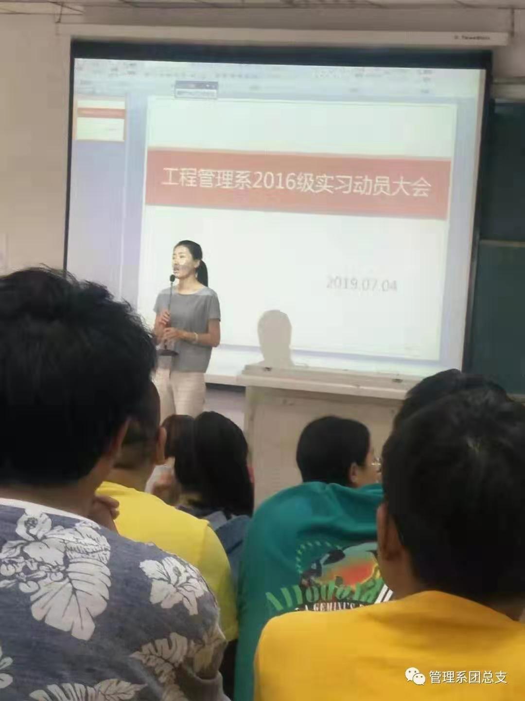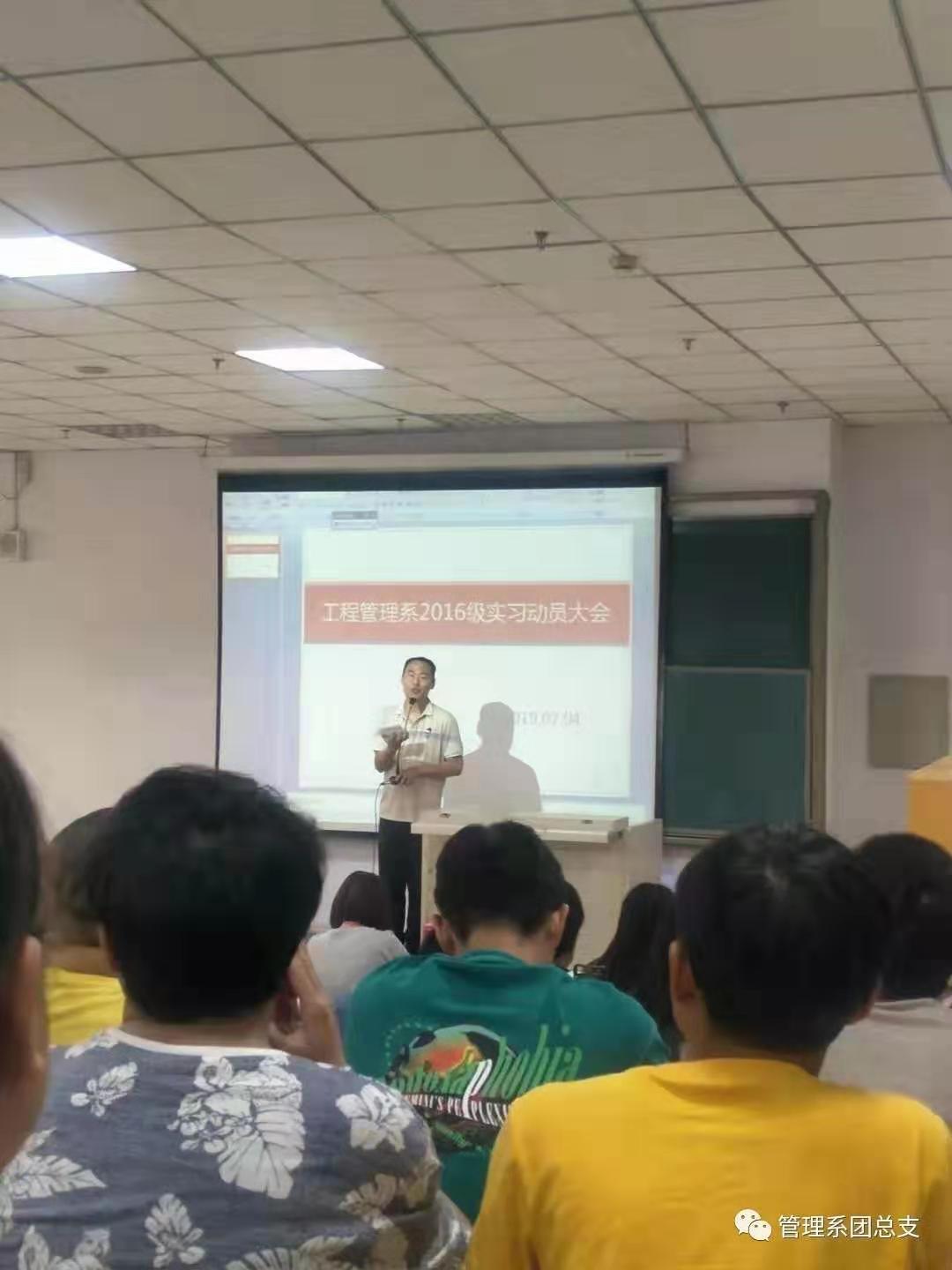 了解職業行業有很多方法,譬如閱讀相關的文章,請教業內人士,但最直接的方法還是親自做這份工作。2019年7月4日下午2:30,我系于一樓階梯教室召開工程管理系2016級實習動員大會。參加此次動員的大會的領導老師有:工程管理系主任張文生教授,土木工程教研室主任孔凡廣副教授,工程管理教研室主任賈鐵梅老師,物業管理教研室主任王小磊老師,教管羅曉波老師,學管姚志強老師。