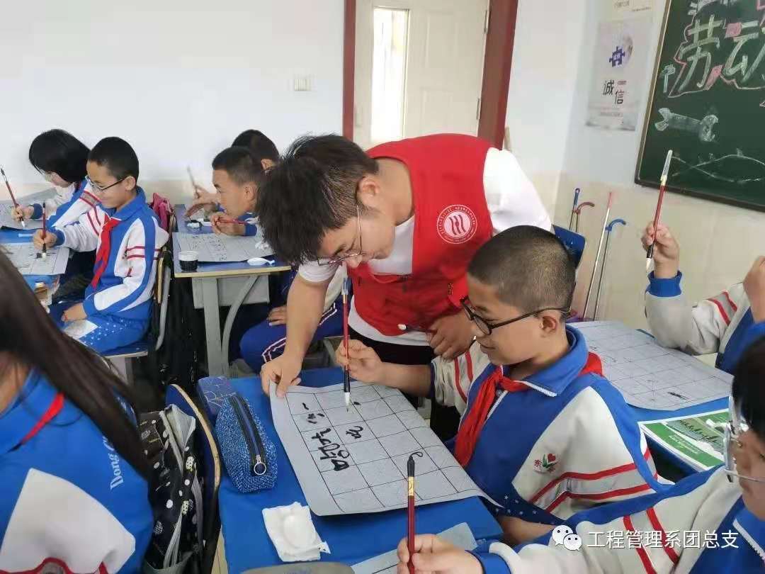 活動開始前,在系里的支持下,志愿者們給孩子們準備了書法文具,共計四十份。志愿者魏子博為孩子們上了時間長為一個半小時的書法課,同學們積極性特別高,到課間時都不愿下課。志愿者寓教于樂,帶領孩子們學習書法基本要領并解答了他們學習過程中遇到的困難和問題。