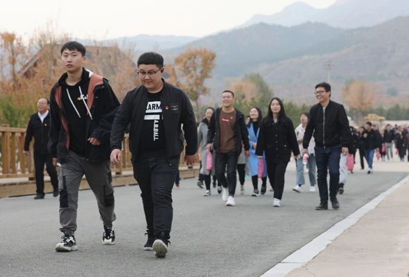 10月19日下午,在參觀完大青山紅色文化公園后,百余名教師來到大青山健身步道。金秋十月,大青山層林盡染,氣候宜人,隨著學(xué)院工會主席張建國發(fā)出的號令,教師們沿著事先計(jì)劃好的路線出發(fā)。路上大家熱情高漲,徜徉在美麗的山林間,沉醉于清新的空氣中,一路交談一路歡歌。