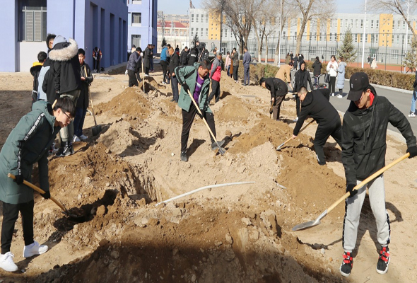 2019年11月14日中午,內蒙古師范大學鴻德學院院長周玉樹、黨委書記盧鳳龍、院長助理周偉,帶領部分職能部門教職工和工程管理系師生在學院西區新建的1、2、3號樓周圍開展挖樹坑勞動。“學院西區新建樓宇周圍尚未綠化,根據學院規劃,西區要種近400棵樹,在土壤尚未封凍之前挖好樹坑,明年一開春好植樹。”總務處處長焦建偉說。