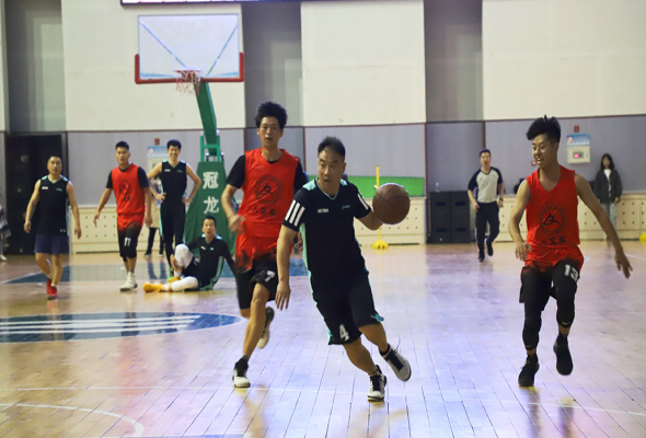 伴著運(yùn)動(dòng)員進(jìn)行曲,8支參賽隊(duì)伍和啦啦操代表隊(duì)邁著整齊的步伐入場(chǎng),一場(chǎng)場(chǎng)精彩激烈的比賽將在這里上演。揭幕戰(zhàn)在教職工籃球隊(duì)和人文系籃球隊(duì)中展開(kāi)。比賽將整個(gè)開(kāi)幕式推向了高潮,運(yùn)球、投籃、防守、突破、雙方隊(duì)員進(jìn)攻十分激烈,籃球在隊(duì)員的手中飛速傳遞,極大地考驗(yàn)著彼此之間的默契配合。裁判員全場(chǎng)緊跟,秉承公平公正的原則,保障了比賽的公正性、連續(xù)性和觀賞性,為整場(chǎng)籃球比賽增添了更多的風(fēng)采。經(jīng)過(guò)激烈角逐,最終教職工籃球隊(duì)81:69人文系籃球隊(duì),獲得比賽勝利。