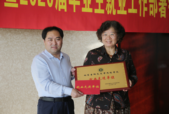 在會上,王新剛副院長為就業工作先進單位、就業工作突出輔導員和就業工作優秀輔導員頒獎,并頒發了榮譽證書和獎金。人文系榮獲“就業工作先進單位”;隋鑫煜、王星卜、郝力、張小莉、斯琴高娃、姚志強、王小磊、李鯤、龐海英、范俊杰、呼和、李星林、邱月、李峰等14位教師榮獲“就業工作突出輔導員”;楊君、鄭蘇丹、呂麗榮、劉瑜、張琪、孫佳寧、劉燕、陳璐璐、肖娜、李榮、郭江、趙靜等12位教師榮獲“就業工作優秀輔導員”。