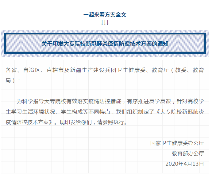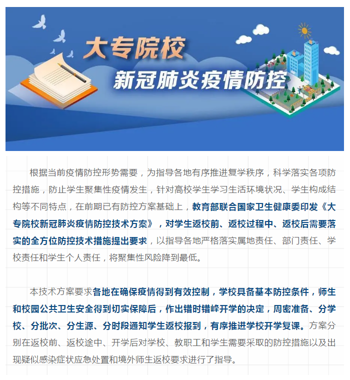 教育部印發《大專院校新冠肺炎疫情防控技術方案》指導各地有序推進開學復課