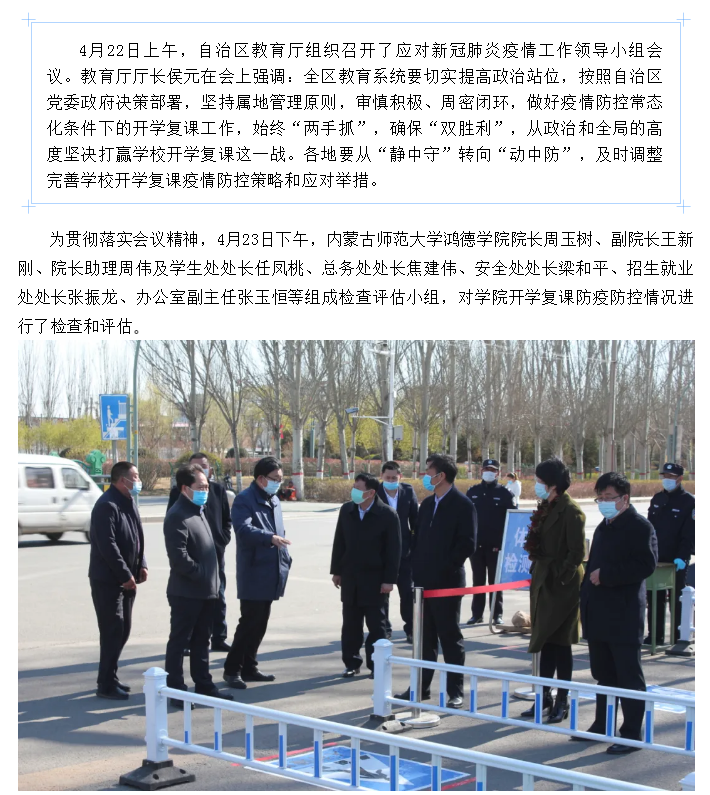 學(xué)院領(lǐng)導(dǎo)檢查評(píng)估學(xué)院開(kāi)學(xué)復(fù)課疫情防控工作