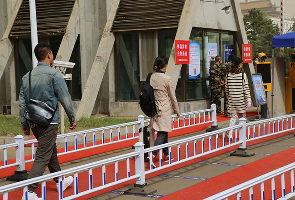 校門口設有等候區、身份核驗區、體溫測量區、消毒區和臨時留觀點。返校學生相互間隔1米,排隊接受完身份核驗、體溫檢測和全面消毒后,依次進入校園。隨著體溫檢測儀的報警,防疫人員立即引導體溫異常的學生轉移至臨時留觀點。