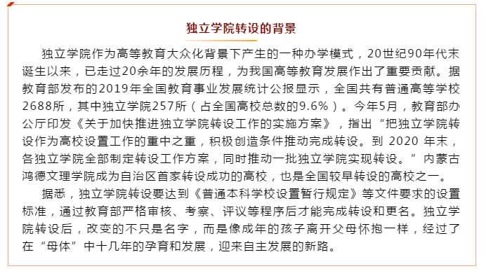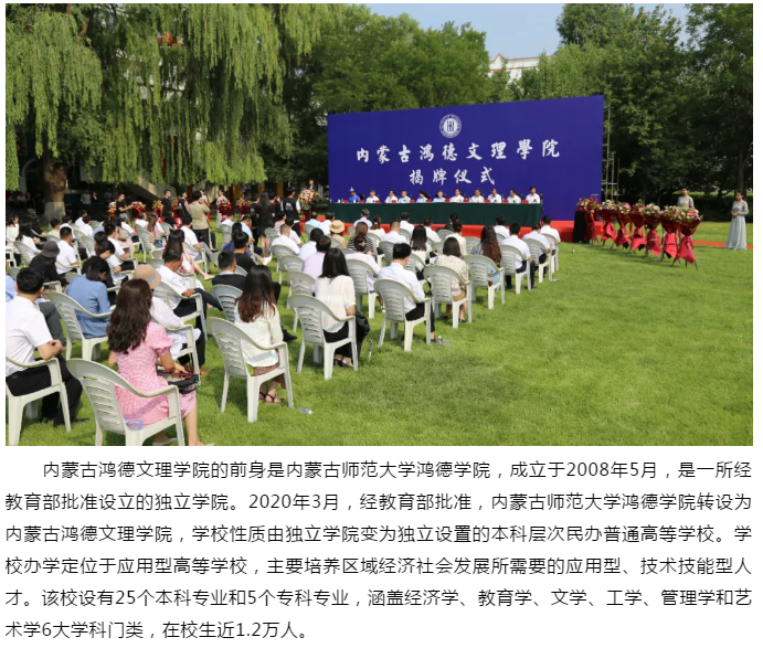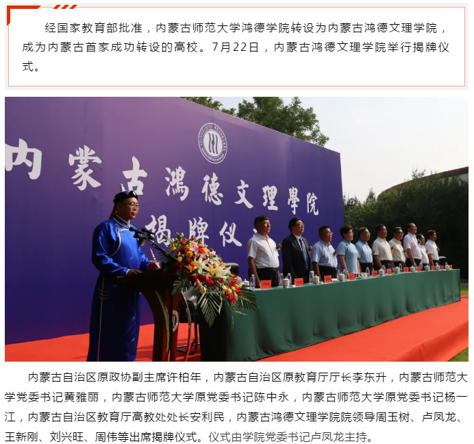內蒙古首家成功轉設的高校內蒙古鴻德文理學院今日揭牌