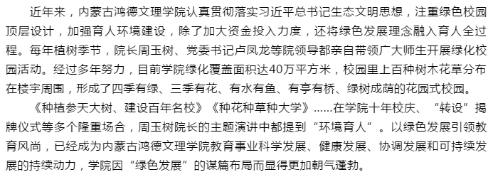 內蒙古鴻德文理學院被評為“首府花園式校園”