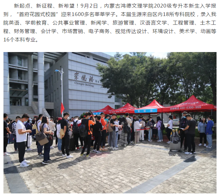 1600多名專升本新生入學報到,今日開始入學教育,9月7日正式開課