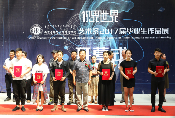 來自于內蒙古美協、美術館及各藝術院校的領導及藝術家們前來觀展,內蒙古師范大學美術學院原黨委書記李金璽教授在開幕式上致辭。我院院長周玉樹、副院長劉文清以及我院各處室、系(分院)負責人到場參加儀式。藝術系布爾古德主任主持開幕式。