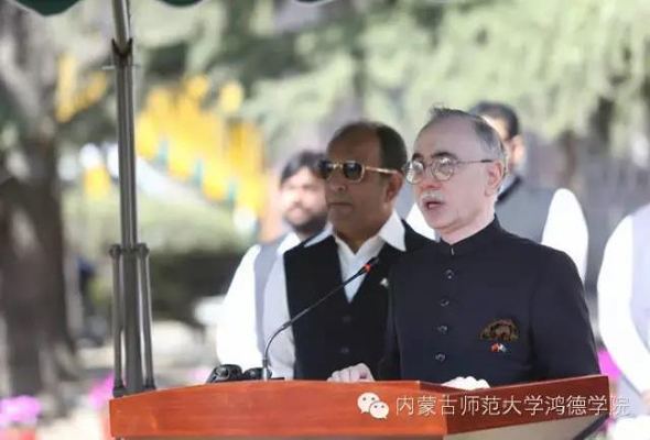 巴基斯坦駐華大使馬蘇德·哈立德在慶祝儀式上致辭,他指出,今年是中巴建交65周年,65年來中巴兩國友誼不斷加深,并且已經(jīng)形成非常成熟的、多維度的、久經(jīng)考驗(yàn)的全天候戰(zhàn)略合作伙伴關(guān)系。兩國一直在努力追求經(jīng)濟(jì)發(fā)展、為人民謀福祉和維護(hù)地區(qū)安全和平的共同目標(biāo)。