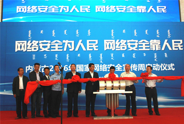 儀式最后,各廳局和呼市網(wǎng)信辦領(lǐng)導(dǎo)上臺共同按下內(nèi)蒙古2016年網(wǎng)絡(luò)安全宣傳周啟動按鈕,內(nèi)蒙古第三屆國家網(wǎng)絡(luò)安全宣傳周正式啟動。