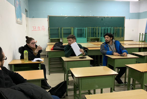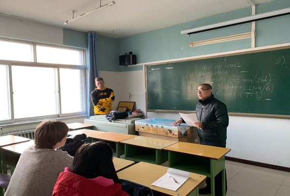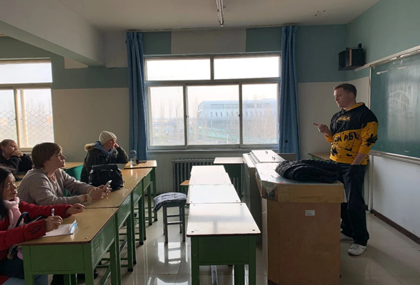 外語系分別于11月25日,11月28日在地坤樓411教室召開了“英語村”期末口試外教培訓會議。會議由基礎教研室主任蔡文斌老師主持,16名外教參加了培訓。