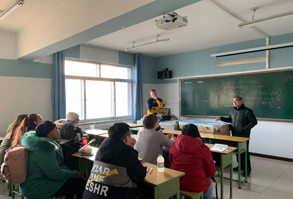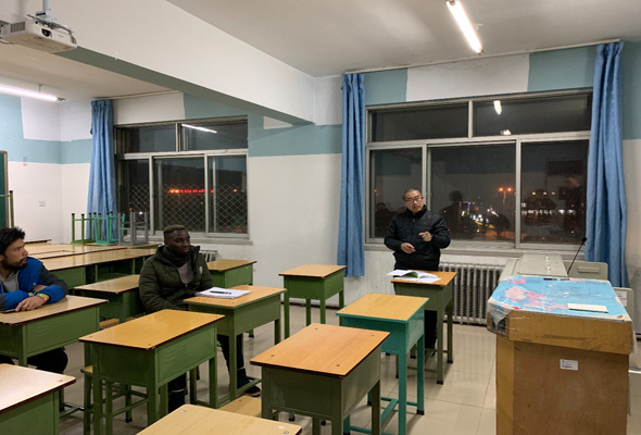 首先,蔡老師對本學期“英語村”教學進行了全面總結,積極肯定了外教口語教學取得的成績,衷心感謝全體外教在提高我系同學英語口語能力方面所做的努力,同時也指出了教學中存在的問題與不足。他鼓勵全體外教要再接再厲,并熱烈歡迎他們下學期繼續合作,共創輝煌。