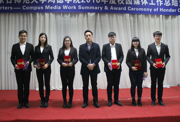 頒獎儀式結束后,學院辦公室副主任白樺發表講話。白樺主任首先對各媒體一年來的努力工作表示肯定,對于大家的辛勤付出表達由衷的感謝。白主任講到,隨著學院的不斷發展,校園媒體也從之前的實踐實訓平臺逐漸演變為學院宣傳的重要載體,成為了鴻德學院對外宣傳的喉舌和輿論導向的風向標。學院在對學生的培養上,無論從招生就業還是教育過程,都十分注重專業技能的培養,這也讓一批又一批的學生記者能夠用知識武裝頭腦,從而在校園媒體中更好的開展工作。在今年的宣傳工作上,總體稿件發布量比去年增長30%,這個數字也充分說明學院在新聞宣傳工作上取得的突破與成績。