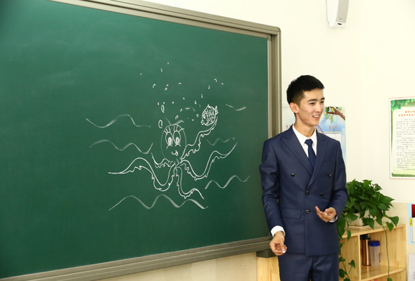 在班級里,祁文強為大家講述了關于理想的勵志小故事,并鼓勵大家勇于追逐夢想,在未來的工作崗位上發光發亮。