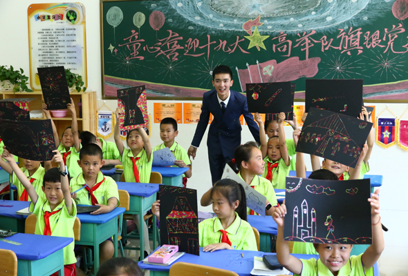 下午3點,“一日院長”祁文強來到綠地小學,開展“一日院長公益行”活動。此次公益行祁文強還從我院的“青春好望角”找到了近200本課外讀物來送給孩子們。同時他還在課堂上教同學們手繪裝飾畫,與大家一同感受親自動手制作的樂趣。