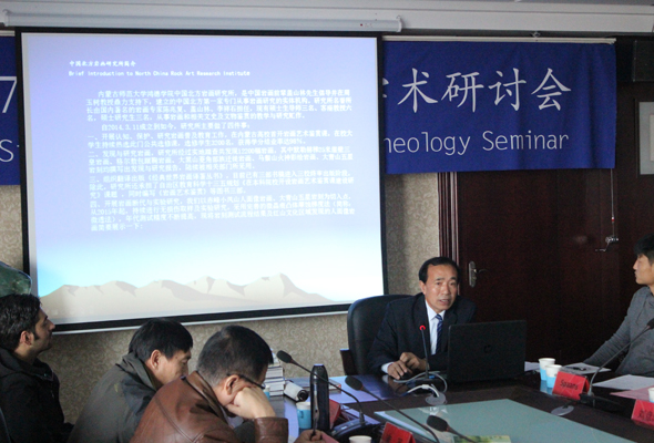周玉樹(shù)院長(zhǎng)率先對(duì)各位來(lái)賓的到來(lái)表示歡迎,隨后以“巖畫(huà)”為主題,闡述了中國(guó)古代完整宗教體系的發(fā)展過(guò)程,指出了宗教對(duì)巖畫(huà)的影響,并舉例說(shuō)明了遠(yuǎn)東地區(qū)及環(huán)太平洋北美地區(qū)的巖畫(huà)與古代中國(guó)“三皇”思想的聯(lián)系,力證了遠(yuǎn)古文明之間的交融滲透關(guān)系。