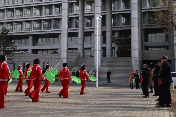 南苑社區連續多年舉辦傳統扭秧歌活動,每年的元宵節都要走進鴻德學院。今年的秧歌精彩紛呈,吸引了教職工駐足觀看。我院院長助理周偉和總務處工作人員接洽秧歌隊領隊,并互送新春祝福。來自南苑社區的大爺大媽們步伐整齊、舞姿多彩,隨著節奏不斷變換隊形;鑼鼓隊鼓聲鏗鏘有力、振奮人心,校園內揚起新春的喜悅。