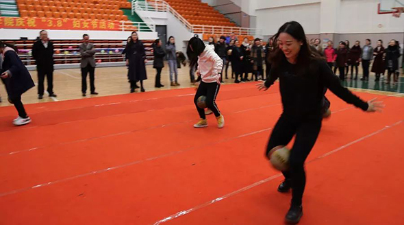 3月8日是第108個“三八”國際勞動婦女節。當日,內蒙古師范大學鴻德學院工會組織的慶“三八”婦女節趣味游戲活動在文體館籃球館舉行。活動現場,多項趣味活動展現了我院女教工健康向上、奮力拼搏的精神風貌。學院黨委書記盧鳳龍親臨活動現場為女教工們加油助威。本次活動包括“六人七足”“企鵝漫步”“橫行霸道”“滾雪球”“眾人一條心”等項目,全校女教工積極踴躍參加,在活動中團結協作、密切配合,學院工會還為女教工們準備了節日禮物?;顒咏o學院女教工們帶來了春風般的溫暖,也留下了女教工們在節日里的歡笑、感動和美好的回憶。