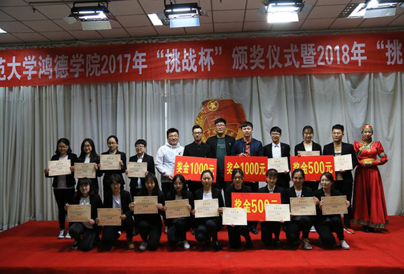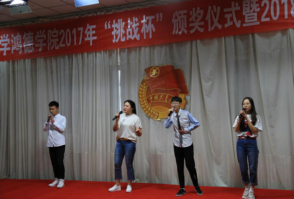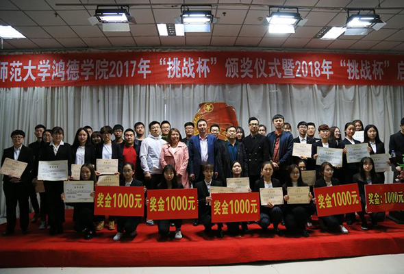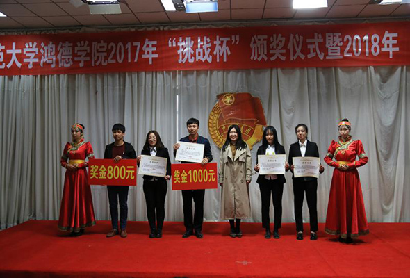 “挑戰杯”是“挑戰杯”全國大學生系列科技學術競賽的簡稱,由共青團中央、中國科協、教育部、全國學聯主辦的大學生課外學術科技活動中一項具有導向性、示范性和群眾性的競賽活動。內蒙古師范大學鴻德學院積極倡導全院學生努力奮進,全面提高自身綜合素質,提升大學生創新精神與實踐能力,促使青少年深入理解科學、技術與社會的相互關系,激發其對科學的興趣,培養他們對社會的責任感。希望鴻德學子,一路挑戰,一路超越,做一路挑戰人,展鴻德人風采。