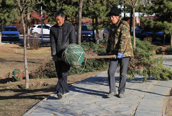 當日傍晚,鴻德學院參與綠化建設的師生在園林師傅的指導下,認真細致的測量樹坑的間距,從挖土、種樹再到填埋、澆水,每個細節都一絲不茍。總務處處長焦建偉在向記者談起校園綠化建設工作時,黝黑的臉龐流露出欣慰的笑容,他說:“每年的春季、冬季,我們都會開展校園綠化工作,按照季節特點栽種不同的樹種。你們看,這些年的建設,我們的校園已經有了高高的松柏、綠油油的草坪、鮮花盛開的桃林……看到它們就像自己的孩子長大了一樣,心里面特別的高興!”