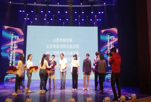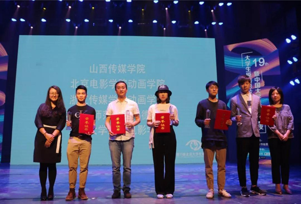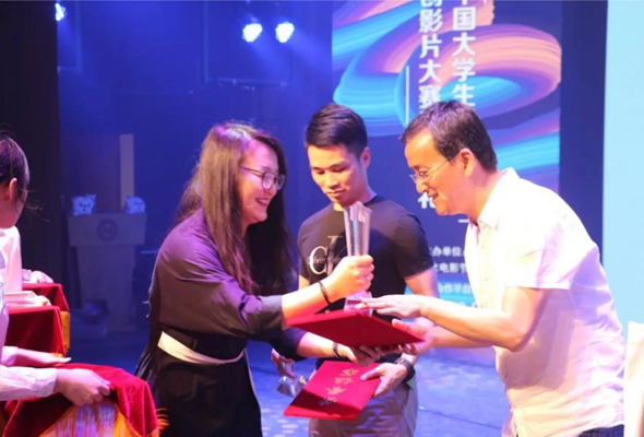 鴻德學(xué)院影視藝術(shù)分院廣播電視編導(dǎo)專(zhuān)業(yè)教研室主任馬宏波代表學(xué)院赴北京領(lǐng)獎(jiǎng),據(jù)馬老師介紹,最佳組織院校獎(jiǎng)競(jìng)爭(zhēng)異常激烈,從學(xué)校組織參賽的數(shù)量和質(zhì)量等多個(gè)方面進(jìn)行評(píng)選,在五所獲獎(jiǎng)院校中,僅有內(nèi)蒙古師范大學(xué)鴻德學(xué)院和上海大學(xué)兩所院校連續(xù)兩次獲此殊榮,這從一方面體現(xiàn)了我院廣播電視編導(dǎo)專(zhuān)業(yè)實(shí)力。近幾年,我院影視藝術(shù)分院廣播電視編導(dǎo)專(zhuān)業(yè)以全國(guó)各類(lèi)影視大賽為推手,積極提升學(xué)生實(shí)踐能力,在自治區(qū)級(jí)及全國(guó)重量級(jí)的影視大賽中表現(xiàn)不俗,不僅在去年首次奪得北京大學(xué)生電影節(jié)最佳組織院校獎(jiǎng),還在去年斬獲全區(qū)藝術(shù)展演微電影大賽設(shè)置的十一個(gè)獎(jiǎng)項(xiàng)中獲得了十個(gè)獎(jiǎng)項(xiàng),創(chuàng)造了全新的記錄。近年來(lái),不僅在北京大學(xué)生電影節(jié)、上海大學(xué)生電視節(jié)、四川金熊貓電視節(jié)等國(guó)際性大賽上連續(xù)獲獎(jiǎng),而且在內(nèi)蒙古藝術(shù)展演微電影大賽和活力內(nèi)蒙古全區(qū)微電影大賽上均成果顯著。