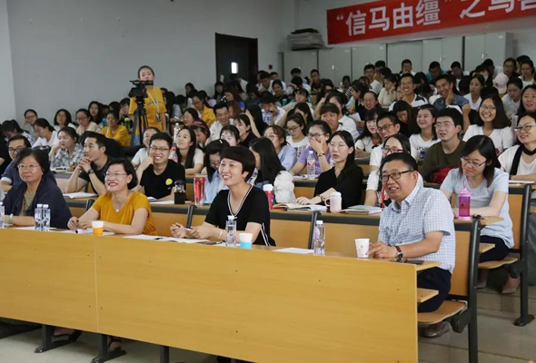 本網(wǎng)訊(文字/趙瞳 攝影/王宏志)5月31日下午,烈日炎炎下鴻德學(xué)院教學(xué)主樓上“崇德樓”三個(gè)大字折射出耀眼的光芒。時(shí)間剛到兩點(diǎn),崇德樓三樓階梯教室里已經(jīng)座無(wú)虛席。現(xiàn)場(chǎng)的老師和同學(xué)懷著滿(mǎn)腔的熱情和期待等候著主講老師——“崇德樓”題字的作者、鴻德學(xué)院的名譽(yù)院長(zhǎng)鄭福田教授。
