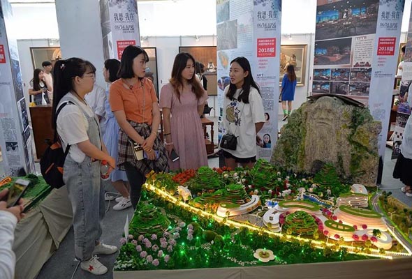 本網(wǎng)訊(記者/攝影 趙瞳)6月14日上午,內(nèi)蒙古展覽館內(nèi)人頭攢動(dòng),我院藝術(shù)系視覺(jué)傳達(dá)、環(huán)境設(shè)計(jì)、美術(shù)學(xué)專(zhuān)業(yè)的同學(xué)們正忙著的調(diào)試、擺放自己的展品,他們對(duì)即將開(kāi)始的展出充滿(mǎn)了緊張和期待。上午九時(shí),我院院長(zhǎng)周玉樹(shù),副院長(zhǎng)劉文清以及我院各處室、各系(分院)老師一行20余人到場(chǎng)參觀(guān)了作品展覽,我院各專(zhuān)業(yè)學(xué)生均自發(fā)組織前往參觀(guān)展出。