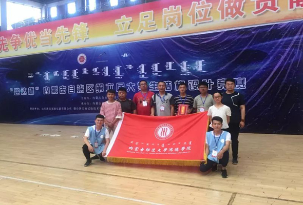 內蒙古自治區第六屆大學生結構設計競賽,由內蒙古教育廳主辦,內蒙古科技大學承辦,共有九所院校的41支隊伍參加本次比賽,分別為內蒙古工業大學、內蒙古農業大學、內蒙古大學交通學院、內蒙古建筑職業技術學院、內蒙古科技大學、鄂爾多斯技術學院、烏海職業技術學院、河套學院、內蒙古師范大學鴻德學院,于2018年6月22日在內蒙古科技大學體育館開賽,本次競賽歷時3天。由管理系孔凡廣老師、田磊老師、王小磊老師帶領9名同學組成的三支隊伍參賽。其中孔凡廣老師指導的由李鑫、蘇潤華、劉洋三名同學組成的眾一隊斬獲最佳創意獎。