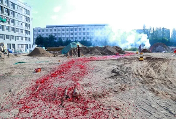 八時十八分,開工儀式正式開始。按照民間動土的習俗,參加儀式的成員燃香祭拜,祈禱一切平安順利。祭拜儀式結束后,參加儀式的成員拿起鐵鍬鏟起了第一鏟土。隨后,鞭炮齊鳴,工程正式開工。