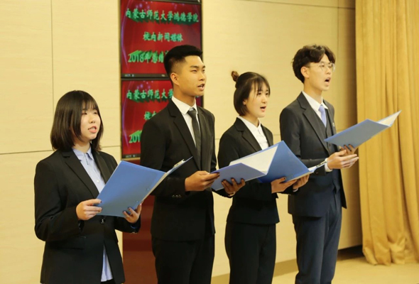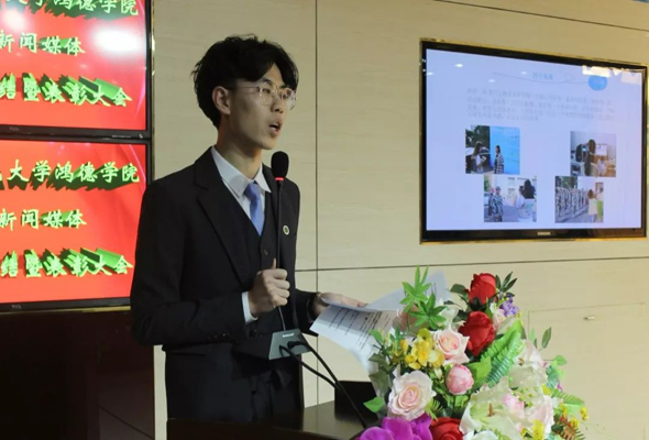 我院校媒的主要組成人員來(lái)自人文系。人文系主任李鳳清教授講到,自校園媒體建設(shè)以來(lái),周玉樹(shù)教授大力支持,從一開(kāi)始“不完善”到現(xiàn)在專業(yè)實(shí)訓(xùn)基地的蛻變,這與校媒人員努力付出息息相關(guān)。他希望校媒人員可以始終秉著“道義、敬業(yè)、堅(jiān)持真理”的精神,把握機(jī)會(huì),為社會(huì)做出貢獻(xiàn)。隨后,影視藝術(shù)分院許艷軍主任講到,電視臺(tái)給學(xué)生一個(gè)發(fā)揮才能創(chuàng)新的平臺(tái),他提出,將實(shí)踐技能與基礎(chǔ)理論相結(jié)合,培養(yǎng)一技之長(zhǎng),達(dá)到畢業(yè)即就業(yè)的水平,努力成為合格的建設(shè)者和接班人。