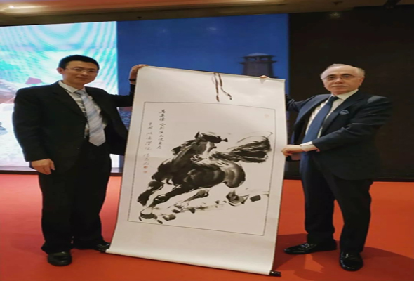 此外,唐俊主任向巴基斯坦駐華大使館高潤生秘書贈送了由藝術設計系李興林老師創作的水墨畫,以此對他多年來積極推動我院與巴基斯坦教育交流做出的貢獻表示衷心的感謝。