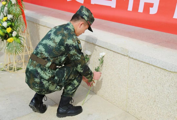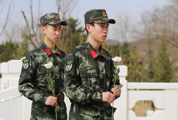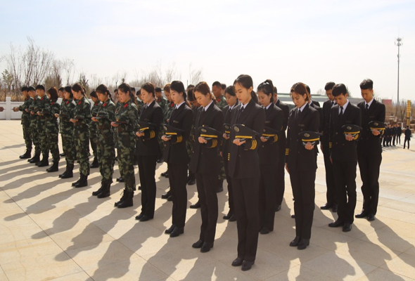 全體護校隊員肅立、脫帽,向革命烈士三鞠躬,默哀,向烈士獻花并發出代表著鴻德學院的宣誓詞。