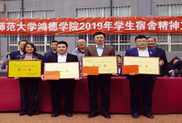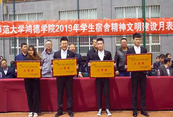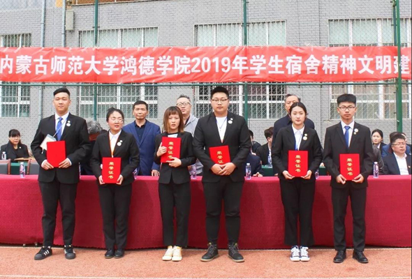 表彰儀式上,學生處處長任鳳桃宣讀《內蒙古師范大學鴻德學院關于學生宿舍精神文明建設月獲獎集體和個人的表彰決定》,表彰了文明宿舍313個;精神文明先進個人1895個;生活管理先進教師6人;生活管理優秀學生干部16人;生活管理先進單位4個;第八屆平安杯知識競賽獲獎單位4個;文明公寓3個;校園安全情景劇大賽獲獎7個單位。