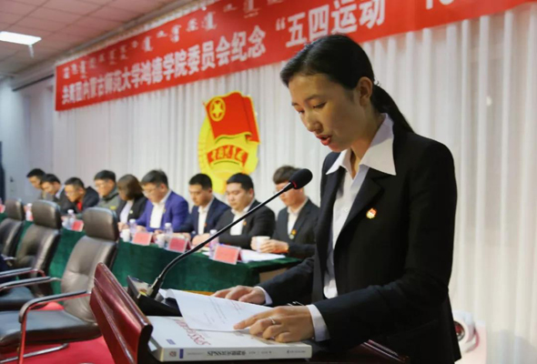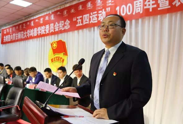 為深入貫徹落實習近平新時代中國特色社會主義思想和黨的十九大精神,紀念“五四運動”100周年,表彰一年來在學院共青團工作中做出突出貢獻的先進集體和個人,4月29日,我院于圖書館五樓報告廳召開共青團內蒙古師范大學鴻德學院委員會紀念“五四運動”100周年暨表彰大會。我院黨委書記盧鳳龍,副院長王新剛,宣傳部部長張玉恒,團委書記王佳麗,學生處副處長周玉森,各團總支書記及學生代表共計500余人參加本次大會。學院團委書記王佳麗主持會議。