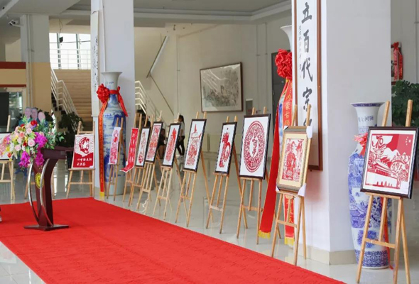 7月4日下午,以“崢嶸七十載,奮進新時代”為主題的慶祝新中國成立70周年剪紙作品展在學院文體館一樓舉行。本次活動由藝術設計系黨支部主辦。