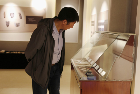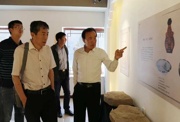 清風(fēng)徐來(lái),陽(yáng)光明媚,各位來(lái)訪領(lǐng)導(dǎo)在研究所長(zhǎng)吳甲才的陪同下參觀了史前書(shū)院中有關(guān)巖畫(huà)研究的八個(gè)展廳,各位領(lǐng)導(dǎo)在參觀的同時(shí)與研究所成員積極討論展廳中文物的研究成果及價(jià)值。