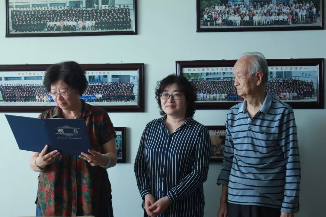 李主任向崔雪雁教授介紹了我系所屬各專業(yè)的基本情況,各專業(yè)的發(fā)展方向,就業(yè)方向,并與李淑章教授共同為崔雪雁教授頒發(fā)“內(nèi)蒙古師范大學鴻德學院客座教授聘書”。