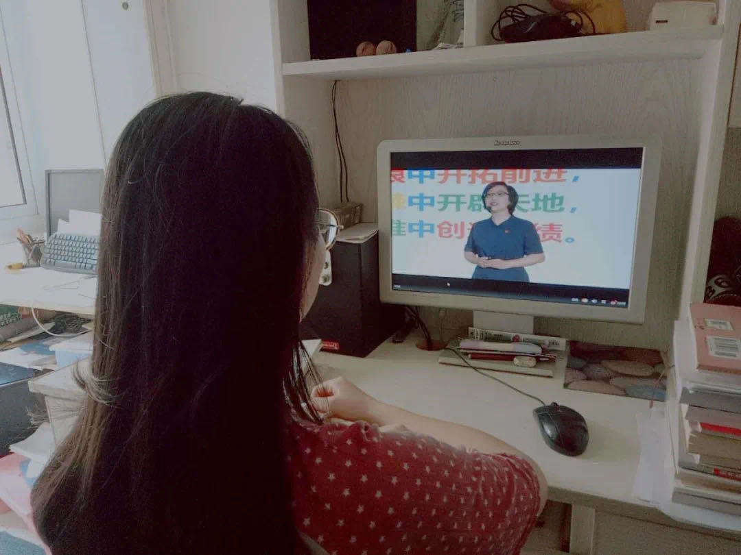7月1日全院師生準時觀看慶祝建黨99周年主題團課的線上直播。