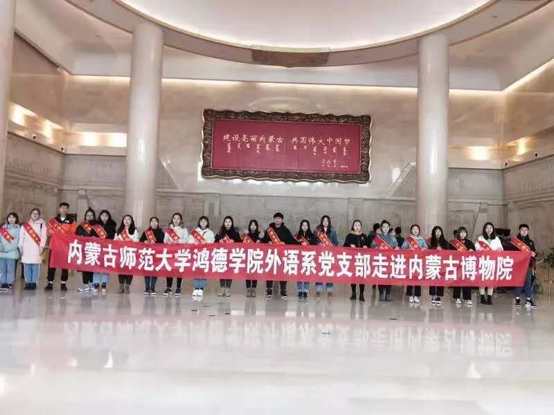為全面貫徹落實習近平新時代中國特色社會主義思想和黨的十九大精神,進一步激發學生黨員愛國情懷,提升學生黨員的思想政治素質,2018年12月2日,內蒙古師范大學鴻德學院外語系黨支部開展了“我的肩膀——能挑多重的擔子”之“走進內蒙古博物院”黨日活動。