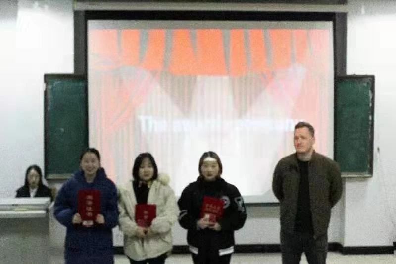 接著,獲獎選手代表發表了獲獎感言。四位評委老師及外教團隊負責人Moe為大賽獲獎選手頒發了獎品和獲獎證書。獲得一等獎的同學有:司娟娟、李陽、白小白(共計3人)
