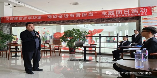 2021年是建黨100周年,也是“十四五”開局之年。內蒙古鴻德文理學院經濟管理系以慶祝建黨百年為契機,緊密結合“黨史學習教育活動”和系內特色黨建,于2021年4月16日學院文體館一樓“青年之家”舉辦“同慶百年建黨華誕,砥礪奮進有我擔當”主題團日活動。