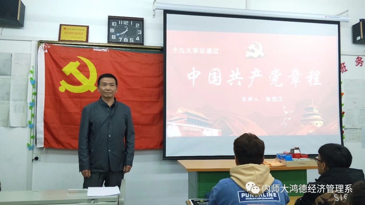 為了提高入黨積極分子對(duì)黨的理解程度和理論知識(shí)水平,端正入黨動(dòng)機(jī),正確的認(rèn)識(shí)黨的性質(zhì),深入了解中國(guó)共產(chǎn)黨的初心與使命,我系繼續(xù)于天健樓307教室開展了以“中國(guó)共產(chǎn)黨章程”為主題的第十九期入黨積極分子黨課培訓(xùn),由經(jīng)濟(jì)管理系黨支部書記張茂江同志主講。