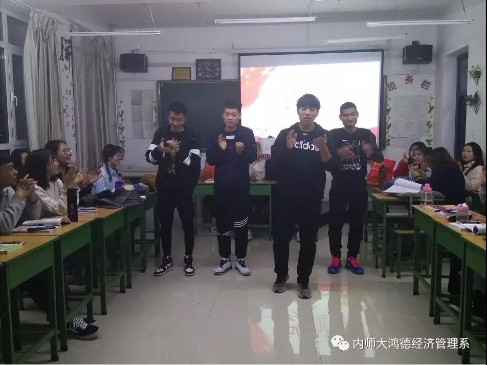 各班同學在團支書的帶領下舉行晚會,團支書首先通過講解改革開放40周年的歷程以及做出的貢獻成就,使同學們有了深刻的認識。其次同學們積極響應,用朗誦詩歌和獻唱歌曲的等多種形式贊美祖國,其中17級金融二班以生動的小品和熱鬧有趣的三句半,把班級氛圍推向了高潮,晚會在歡聲笑語中完美的結束了。